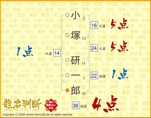 小塚研一郎さんの総運は38画の4点!
