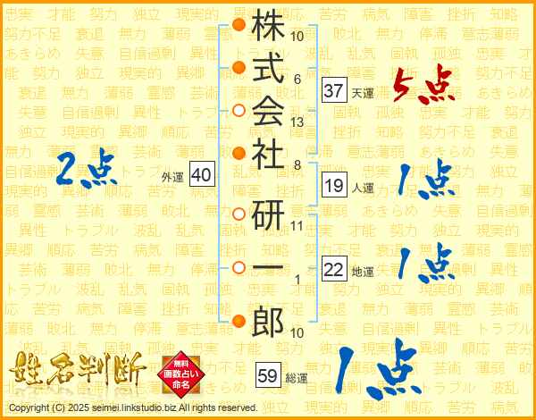 株式会社研一郎さんの天運は37画の5点!