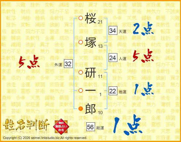 桜塚研一郎さんの総運は56画の1点!