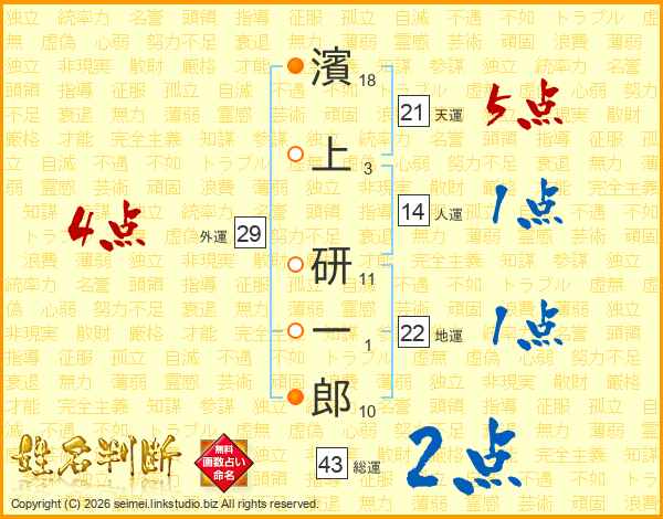 濱上研一郎さんの天運は21画の5点!