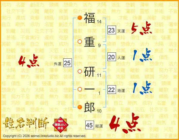 福重研一郎さんの総運は45画の4点!