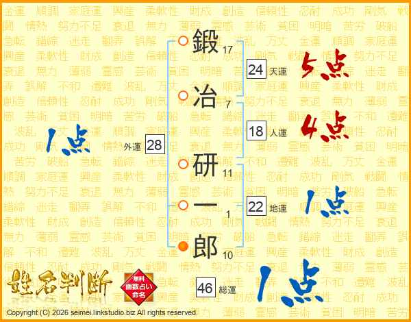 鍛冶研一郎さんの総運は46画の1点!