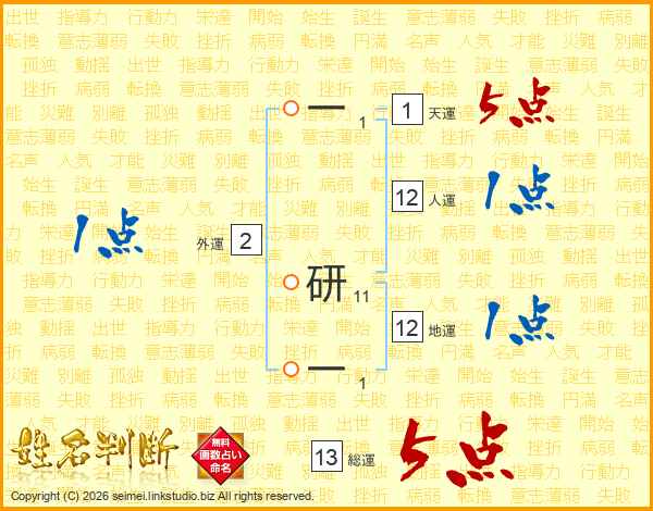 一研一さんの総運は13画の5点!