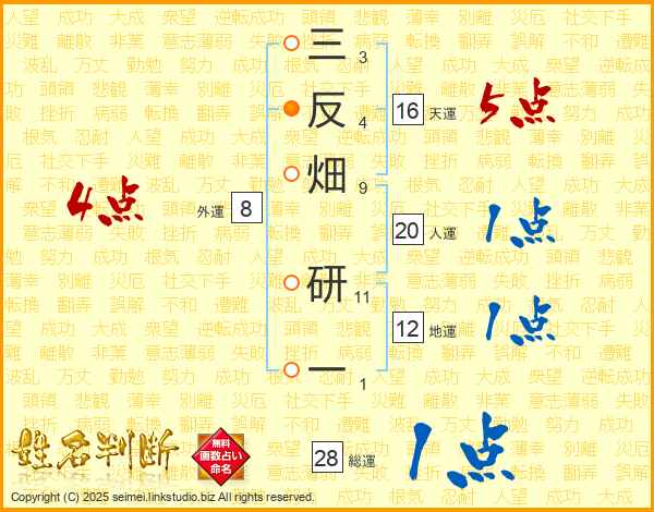 三(3画)反(4画)畑(9画) 研(11画)一(1画)