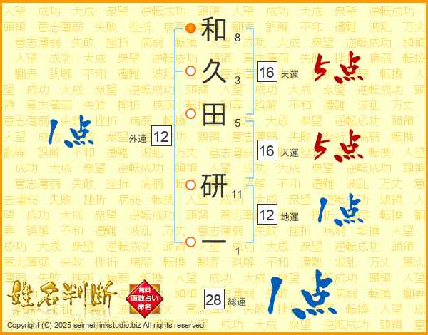 和久田研一さんの総運は28画の1点!