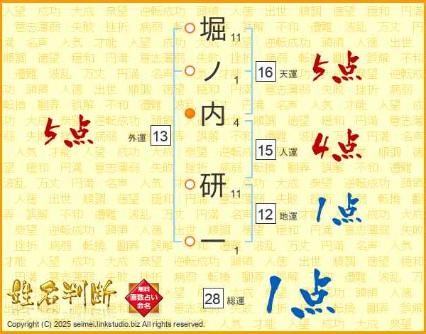 堀ノ内研一さんの総運は28画の1点!