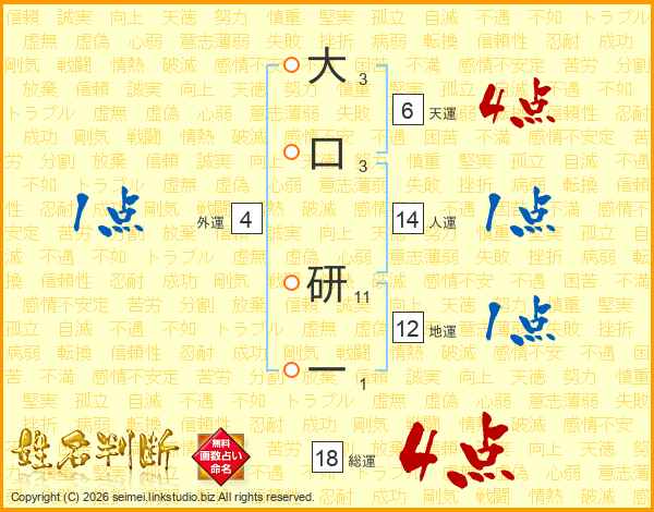 大口研一さんの総運は18画の4点!