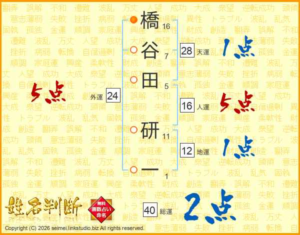 橋谷田研一さんの総運は40画の2点!