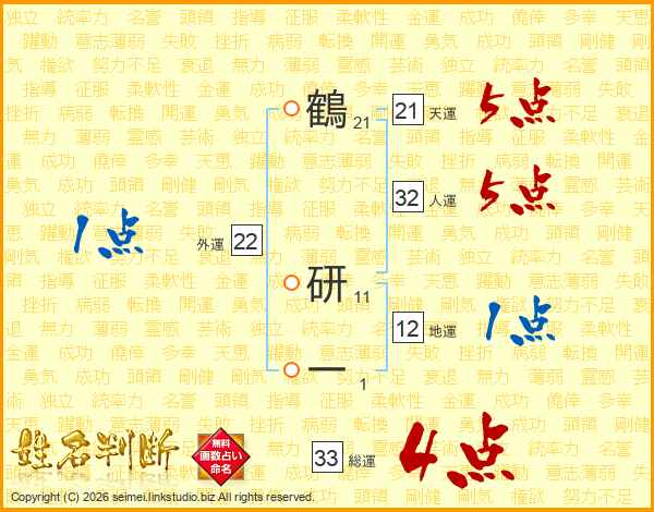 鶴研一さんの総運は33画の4点!