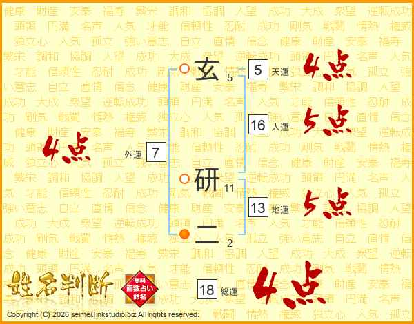 玄研二さんの総運は18画の4点!