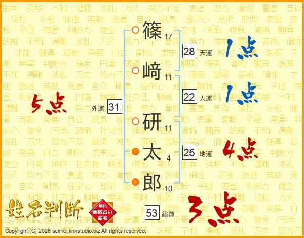 篠(17画)﨑(11画) 研(11画)太(4画)郎(10画)