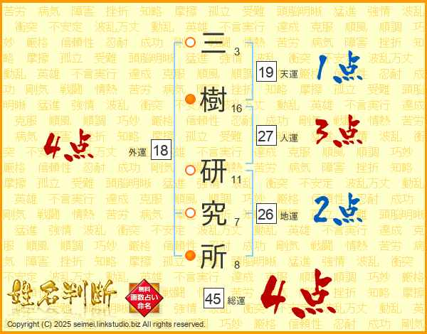 三樹研究所さんの総運は45画の4点!
