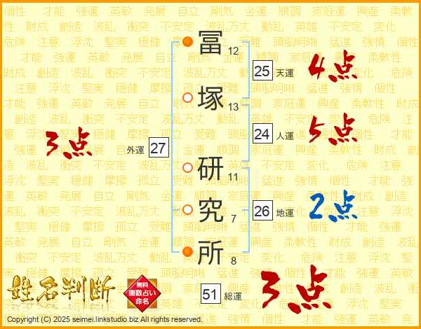 冨(12画)塚(13画) 研(11画)究(7画)所(8画)