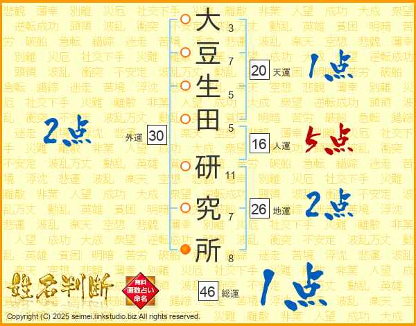 大豆生田研究所さんの人運は16画の5点!