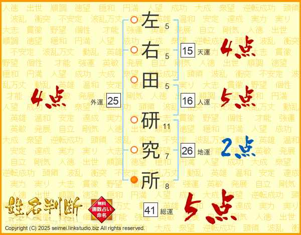 左(5画)右(5画)田(5画) 研(11画)究(7画)所(8画)