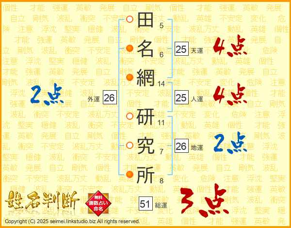 田名網研究所さんの人運は25画の4点!