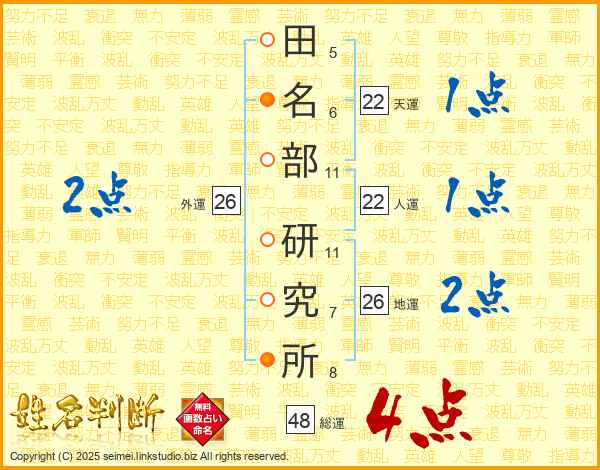 田(5画)名(6画)部(11画) 研(11画)究(7画)所(8画)