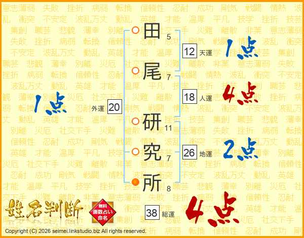 田(5画)尾(7画) 研(11画)究(7画)所(8画)