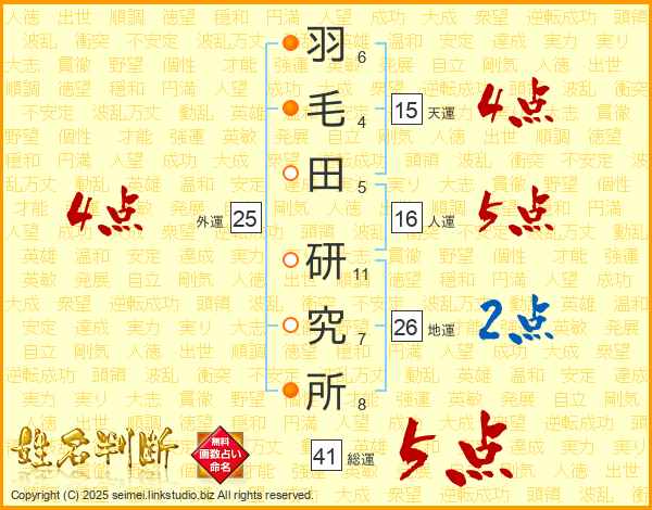 羽(6画)毛(4画)田(5画) 研(11画)究(7画)所(8画)