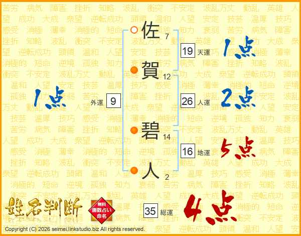 佐(7画)賀(12画) 碧(14画)人(2画)