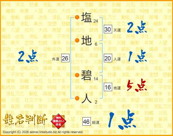 塩地碧人さんの総運は46画の1点!