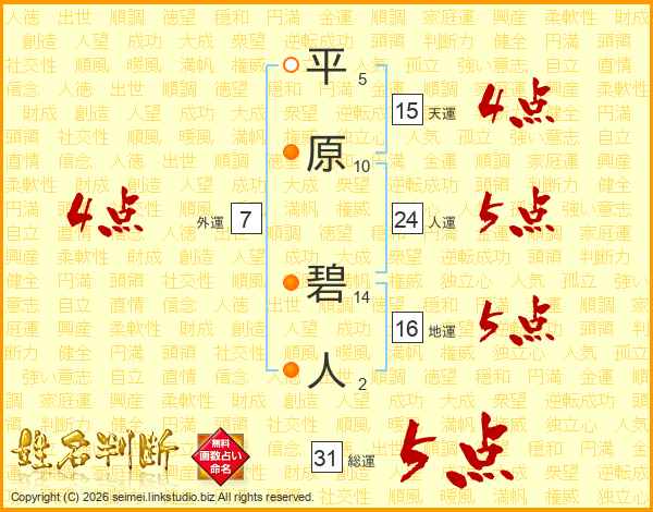 平原碧人さんの総運は31画の5点!