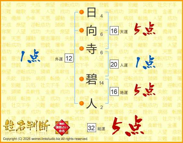 日向寺碧人さんの総運は32画の5点!