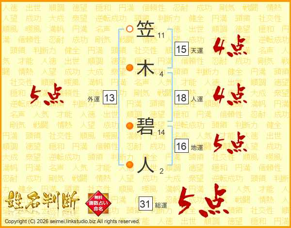 笠木碧人さんの総運は31画の5点!