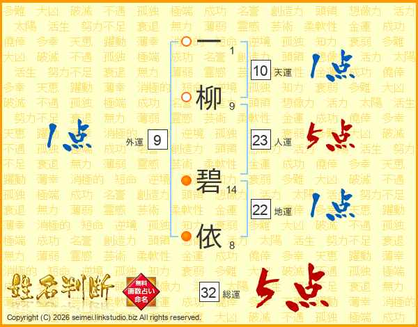 一柳碧依さんの総運は32画の5点!