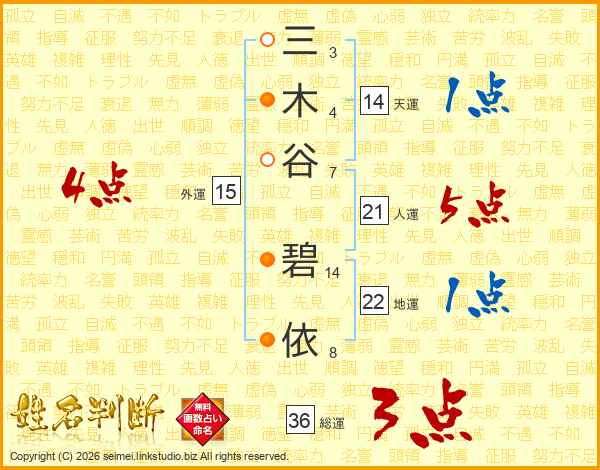 三(3画)木(4画)谷(7画) 碧(14画)依(8画)