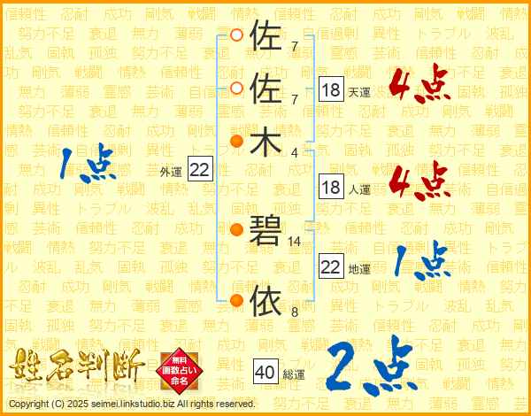 佐(7画)佐(7画)木(4画) 碧(14画)依(8画)