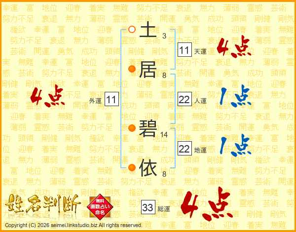 土(3画)居(8画) 碧(14画)依(8画)