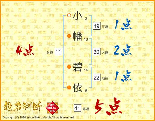 小幡碧依さんの総運は41画の5点!