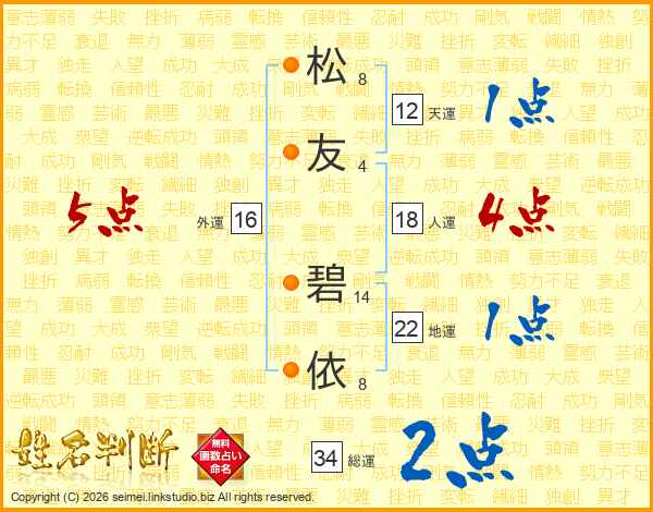 松(8画)友(4画) 碧(14画)依(8画)