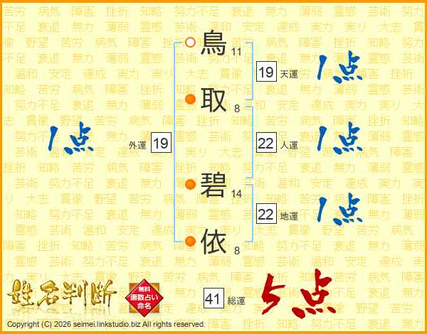 鳥取碧依さんの総運は41画の5点!