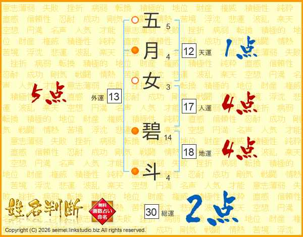 五(5画)月(4画)女(3画) 碧(14画)斗(4画)