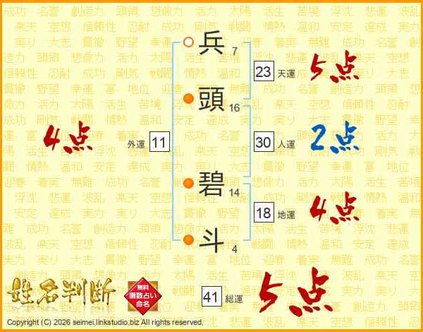 兵頭碧斗さんの総運は41画の5点!