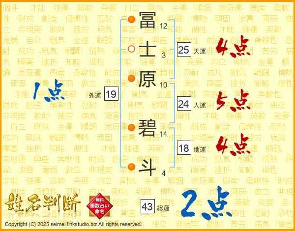 冨(12画)士(3画)原(10画) 碧(14画)斗(4画)