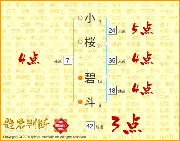 小(3画)桜(21画) 碧(14画)斗(4画)
