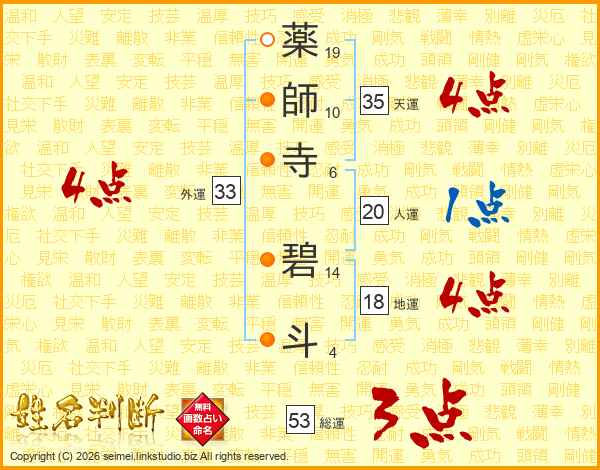 薬(19画)師(10画)寺(6画) 碧(14画)斗(4画)