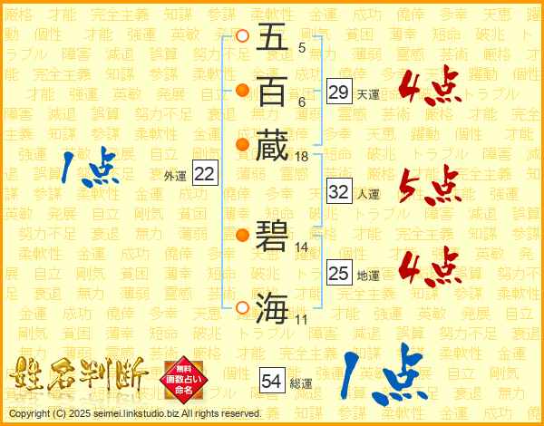 五(5画)百(6画)蔵(18画) 碧(14画)海(11画)