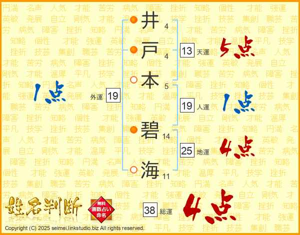 井(4画)戸(4画)本(5画) 碧(14画)海(11画)