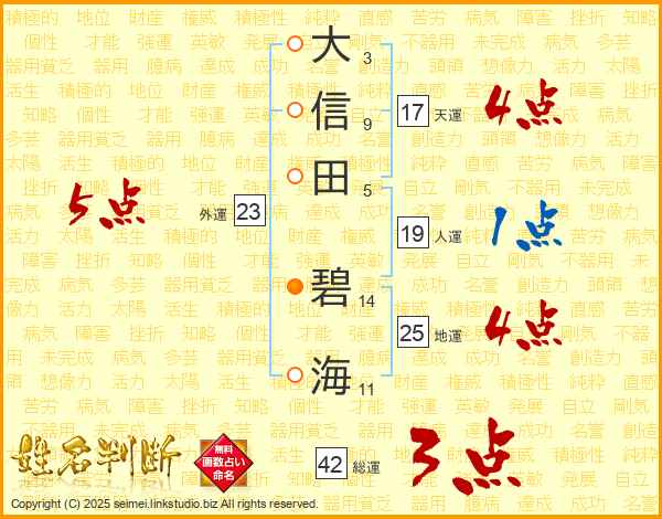 大信田碧海さんの地運は25画の4点!