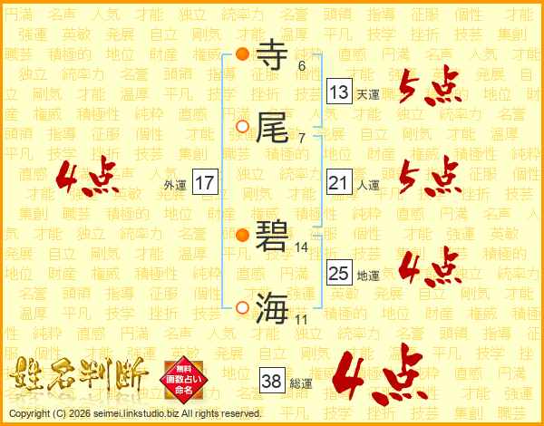 寺尾碧海さんの総運は38画の4点!