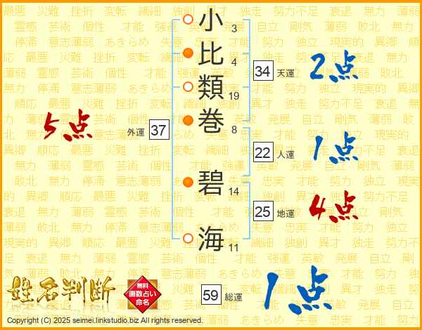 小(3画)比(4画)類(19画)巻(8画) 碧(14画)海(11画)