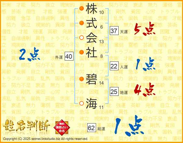 株(10画)式(6画)会(13画)社(8画) 碧(14画)海(11画)