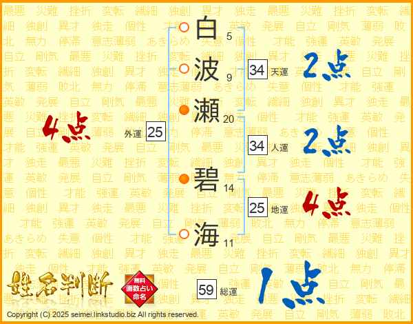 白(5画)波(9画)瀬(20画) 碧(14画)海(11画)