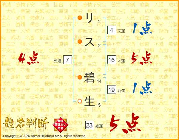 リス碧生さんの総運は23画の5点!
