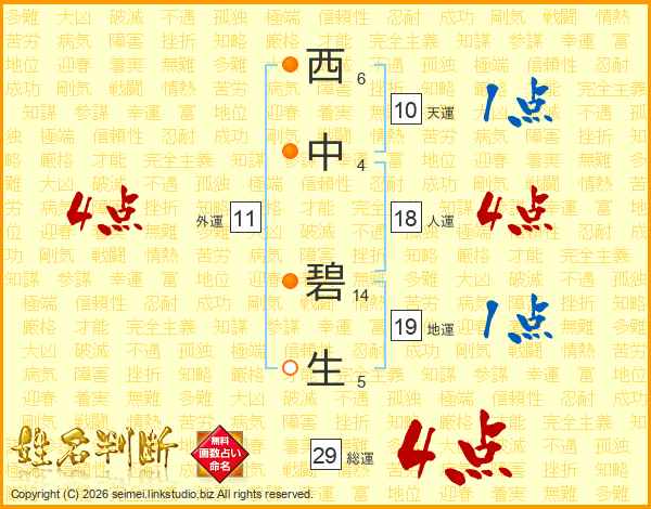 西中碧生さんの総運は29画の4点!