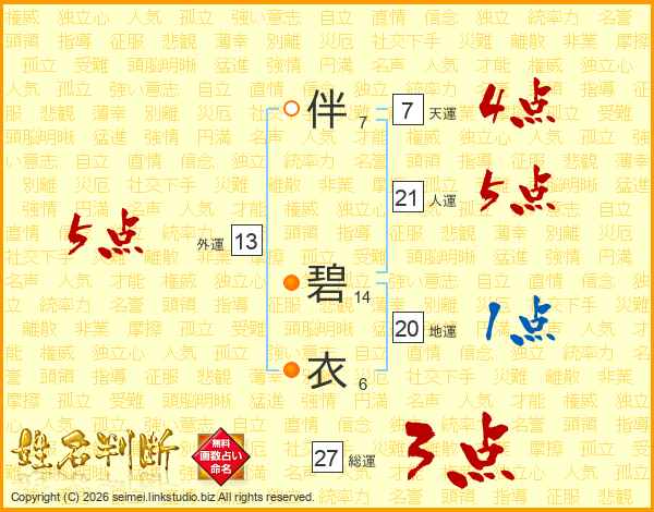 伴碧衣さんの外運は13画の5点!